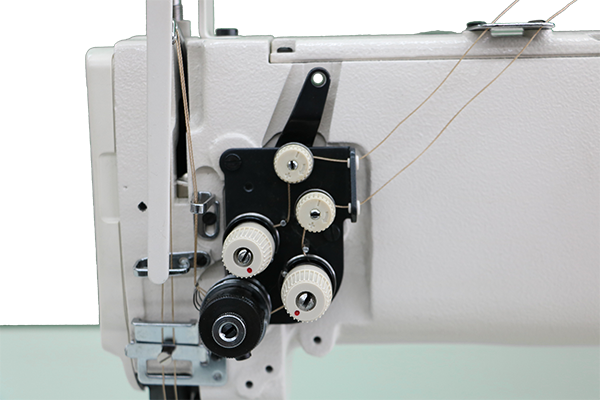 This machine is a two needle, 18” long arm, compound feed with walking foot lockstitch sewing machine. It is equipped with a climbing device that allows the adjustment to the alternation of the upper feed of the machine to climb over different thicknesses of material without using any tools. This can be done on the “fly” so downtime of the machine due to setup is virtually nil. Developed from the regular TN-1508 series machine, it has a working space of 457 mm(18.28″) x 100 mm(4″) which helps with long or larger workloads. It is suitable for sewing medium to heavy duty materials, such tents, cushion, tarpaulins, car cover etc.