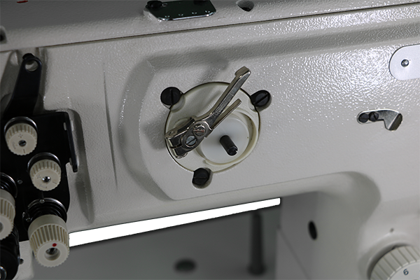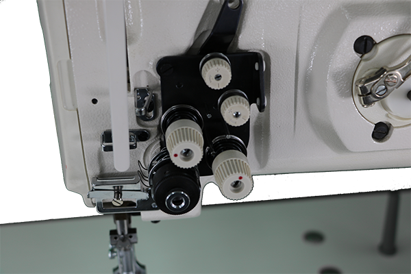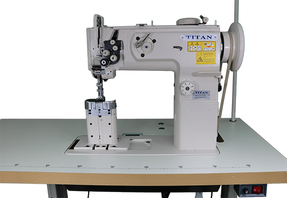 This machine is a Two needle, Post bed, compound feed with walking foot lockstitch sewing machine. It is equipped with a climbing device that allows the adjustment to the alternation of the upper feed of the machine to climb over different thicknesses of material without using any tools. This can be done on the “fly” so downtime of the machine due to setup is virtually nil. Developed from the regular TN-1508 series machine, it has a working space of 250 mm(10″) x 270 mm(10.8″) which helps with long or larger workloads. It is suitable for sewing medium to heavy duty materials, such as sofa, car seats, bags, sports goods, etc.